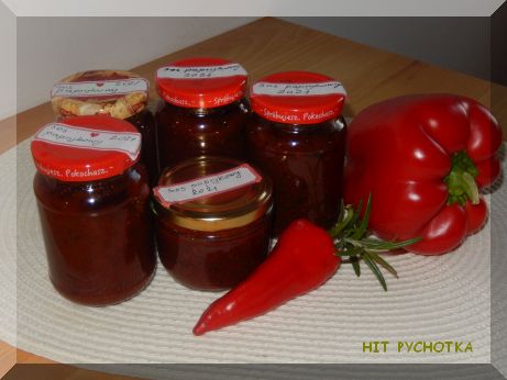 Gorącą marmoladę paprykową nakładać do słoików ( najlepsze są słoiki po 200g ) , zakręcać i pasteryzować.